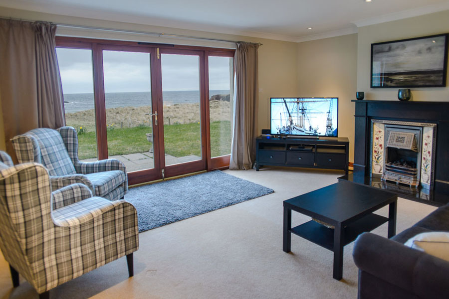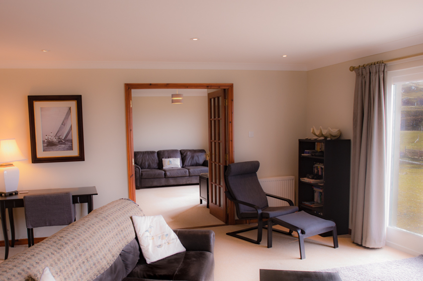 The sitting room has a spectacular views of the Atlantic Ocean,it has seating for six with a large leather sofa and comfortable chairs
